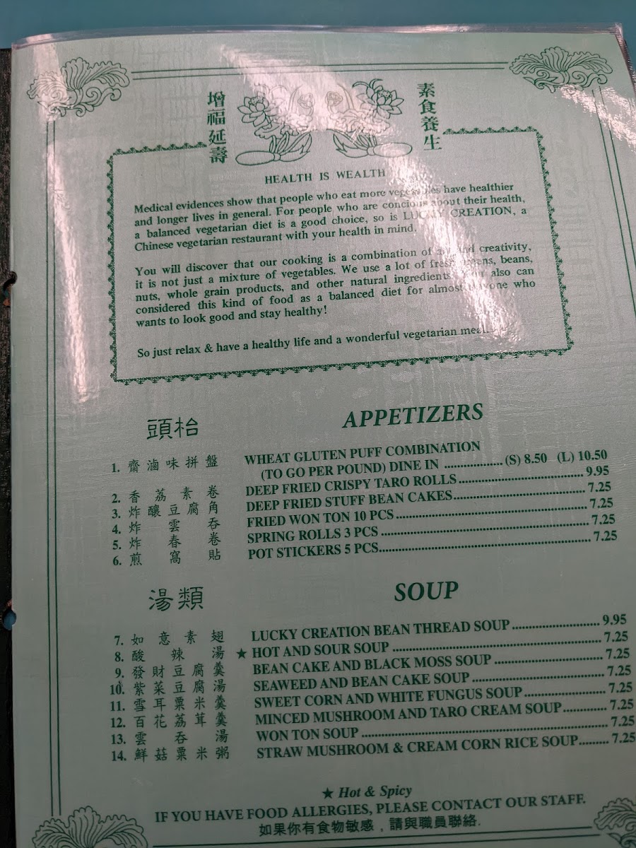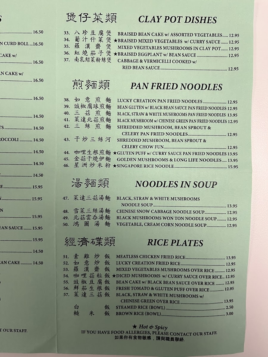 The reviews from those who have dined here echo the spirit of The Lucky Creation. Diners rave about the hearty flavors and the homely feel of the restaurant. One satisfied customer mentioned, "It's the kind of little hole in the wall, mom and pop place that I dream about." Another enthusiast shared, "As a vegetarian, it's nice to just go to a restaurant where I can order anything on the menu with no dietary restrictions." This reflects the simple yet profound joy of being able to indulge without the worry of dietary limits.